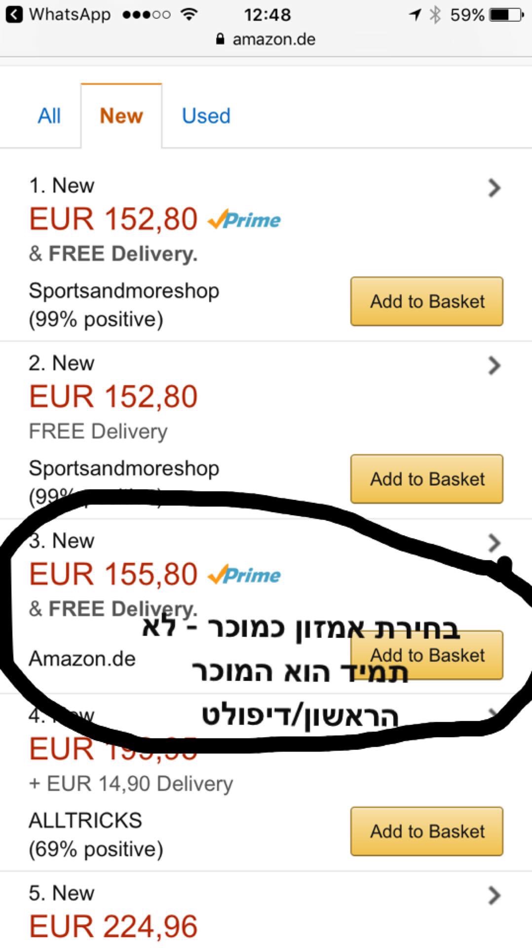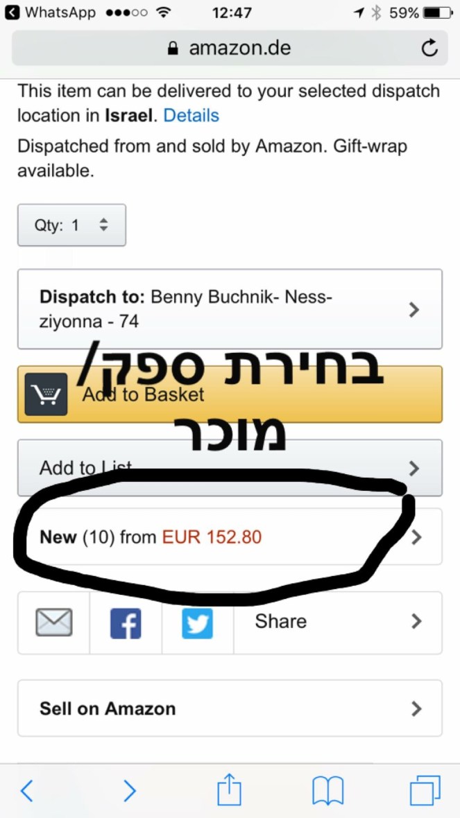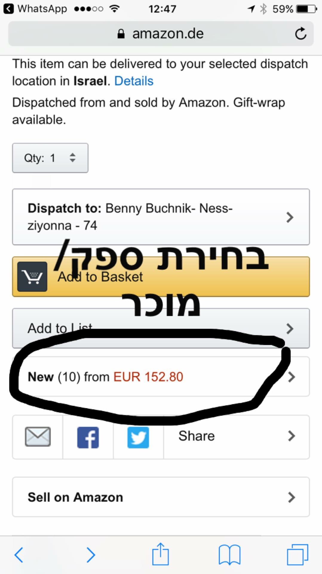5. שאתם ניגשים למוצר – ומופיע לכם שהוא לא נשלח לארץ – תיכנסו לאזור של בחירת הספקים/מוכרים – ותבחרו את אמזון – לרוב זה ״יפתח״ לכם את המוצר לשילוח לישראל.