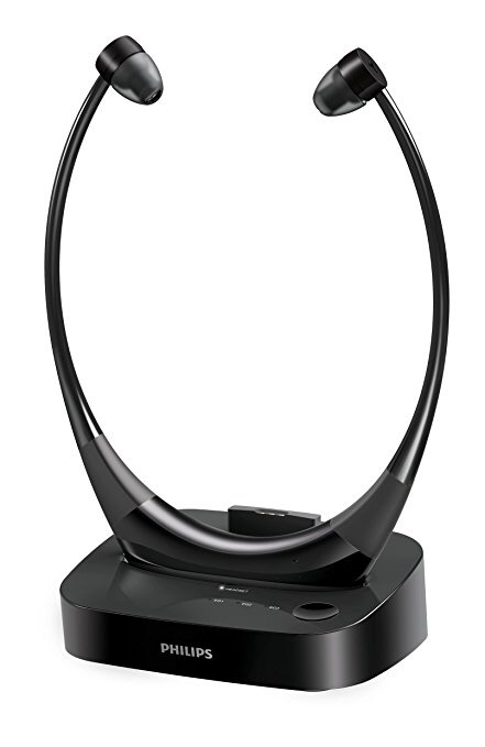 Philips SSC5001/10 Wireless AudioBoost TV Headphones, Recharging Docking Station, Optical Cable – Black