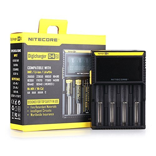 • Compatible with and identifies Li-ion (26650, 22650, 18650, 17670, 18490, 17500, 18350, 16340(RCR123), 14500, 10440), Ni-MH and Ni-Cd (AA, AAA, AAAA, C) rechargeable batteries