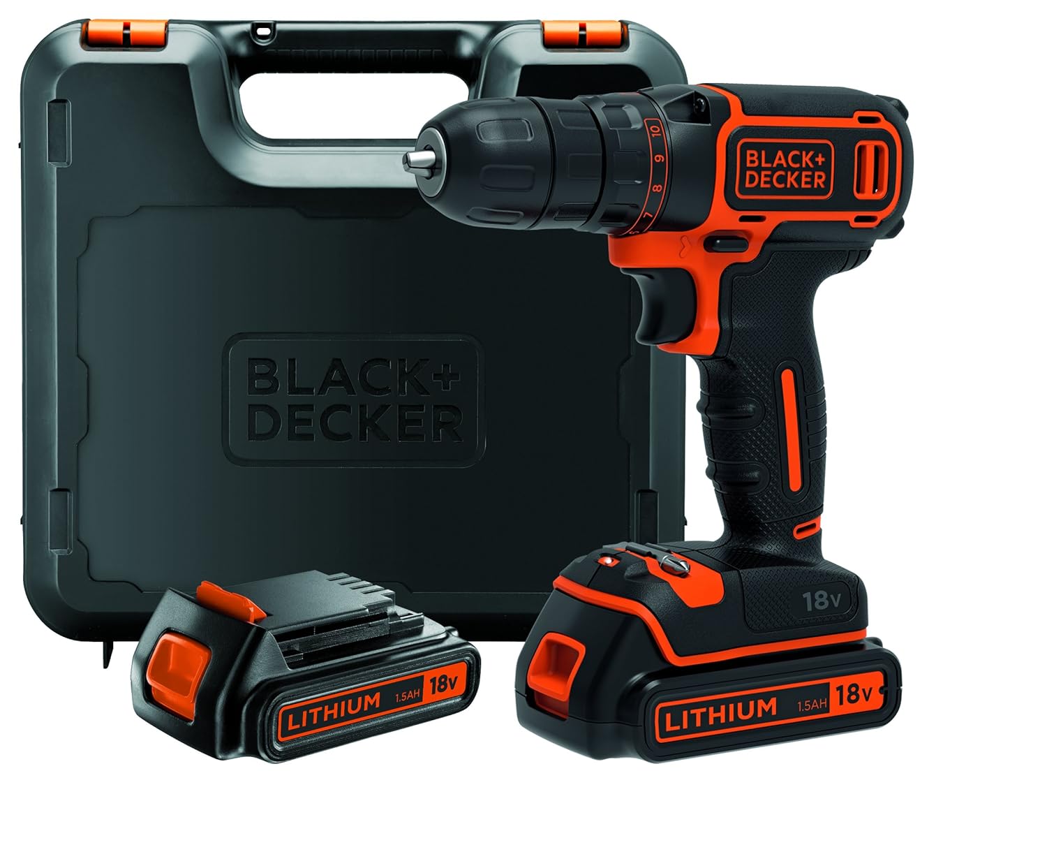 Black + Decker BDCDC18KB-QW Cordless drill 18 V with 2 batteries charger 3 h