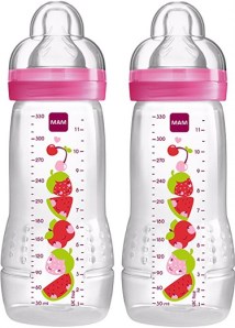 MAM 330ml Baby Bottle With Spill Free Lid – Fast Flow Teat (Pink, Pack of 2)