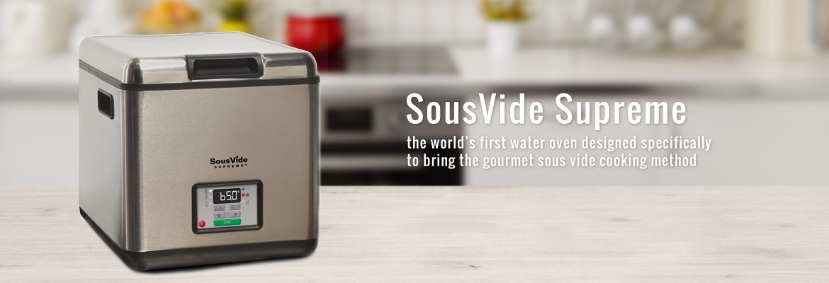 The SousVide Supreme is the world’s first water oven designed specifically to bring the gourmet sous vide cooking method into home and small restaurant kitchens. Sous Vide cooking locks in the flavor and preserves the nutritional quality of whatever food is cooked inside. The result is food of incomparable taste and texture: steak perfectly cooked edge-to-edge, vibrant vegetables, juicy tender chicken breasts, and ribs with the meat literally falling off the bone. All at the push of a button.