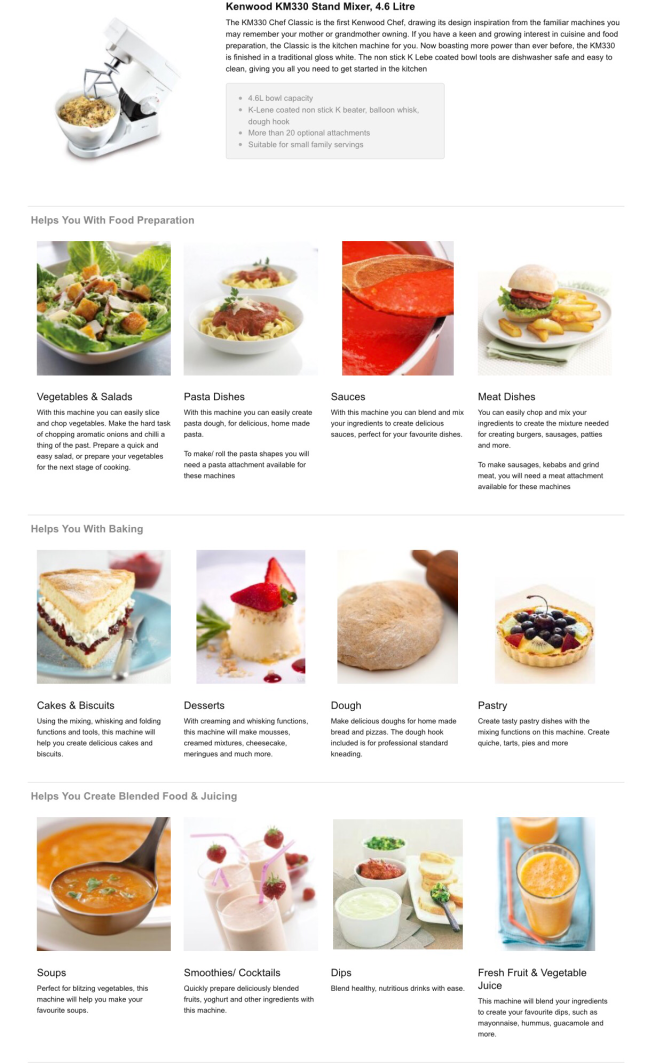 The KM330 Chef Classic is the first Kenwood Chef, drawing its design inspiration from the familiar machines you may remember your mother or grandmother owning. If you have a keen and growing interest in cuisine and food preparation, the Classic is the kitchen machine for you. Now boasting more power than ever before, the KM330 is finished in a traditional gloss white. The non stick K Lebe coated bowl tools are dishwasher safe and easy to clean, giving you all you need to get started in the kitchen