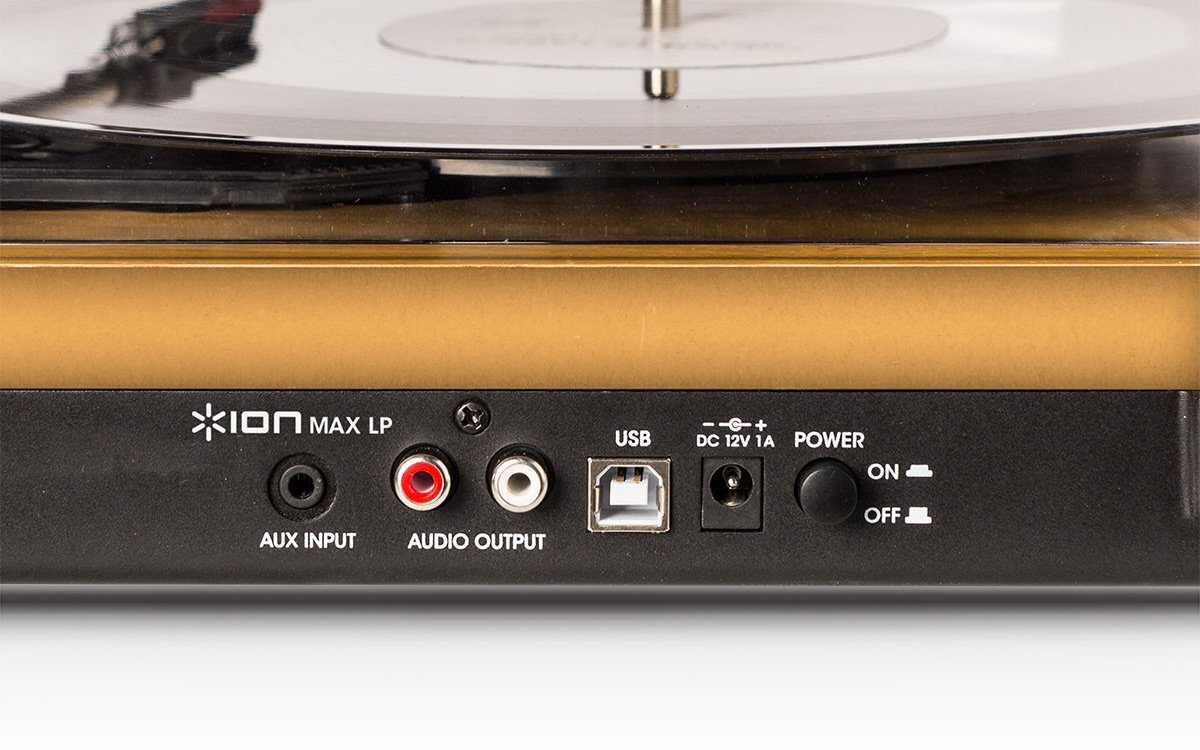 ION AUDIO MAX LP Turntable – פטיפון בייתי הכולל כל מה שצריך לשמוע תקליטים ללו צורך בכיוונים או מכשור נוסף, כולל מחט, רמקולים, חיבור USB להמרת תקליטים למחשב, תוכנת הקלטה, יציאת אוזניות ויציאה למערכת
