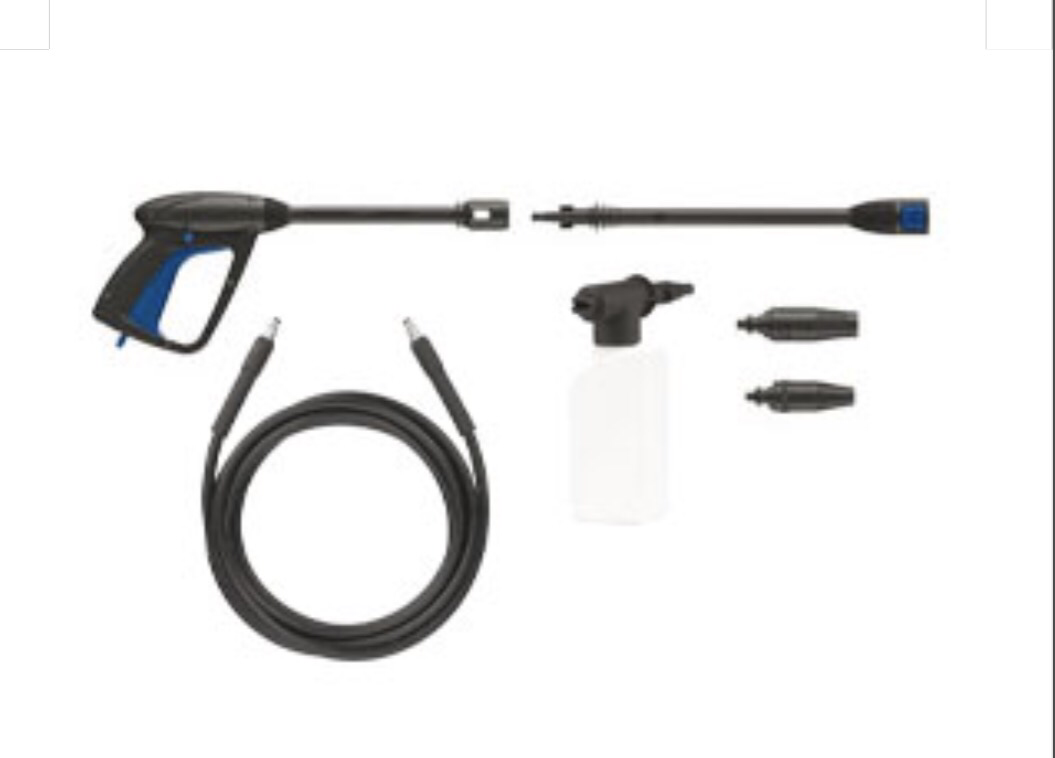 Pump 3 axial piston wobble plate, aluminum head. Pistons in hardened stainless steel, automatic safety valve with resetting of the pressure in the pump head, water filter can be inspected. Complete foaming kit liter tank. 0.5, high pressure hose, gun and lance. electric cable 5 mt.