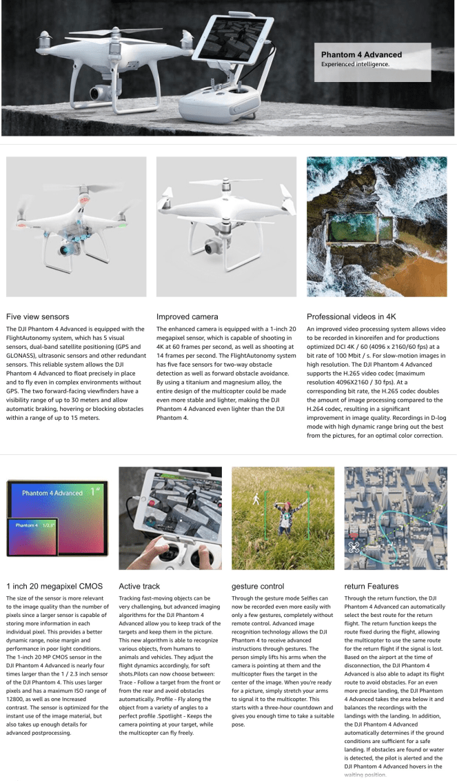 עוד על המוצר – אתר רישמי dji Phantom 4
