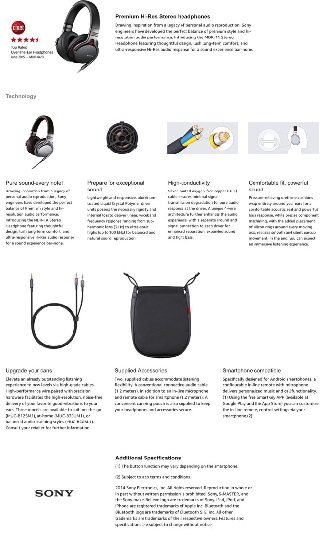 Sony MDR1A Premium Hi-Res Stereo Headphones (Black)