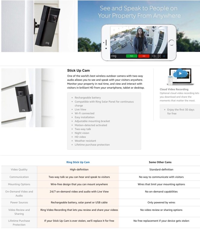 - Free 30-day trial to Cloud Video Recording, so you can review, save and share videos captured by Ring