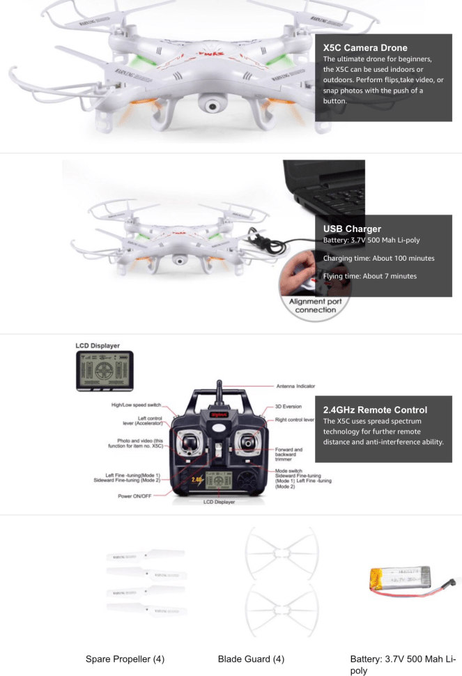Syma X5C Quadcopter equipped with HD cameras, 2.4G 6 Axis Gyro