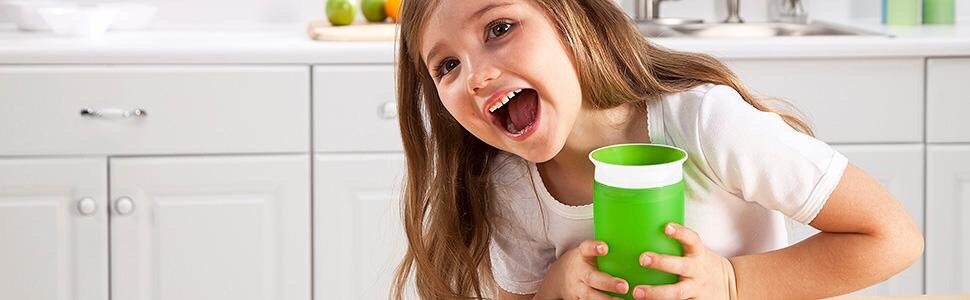 כוס הפלא 360 מאפשרת לילד לשתות מכל מקום סביב שפת הכוס (360) מבלי לשפוך את הנוזל. הכוס 360 מתוכננת כדי לסייע לילד להתקדם משתייה מבקבוק או מכוס לפעוטות לשתייה בספל רחב.