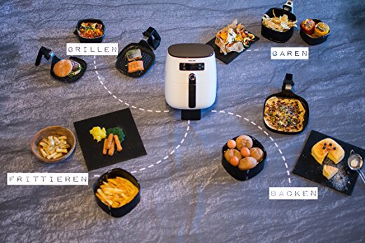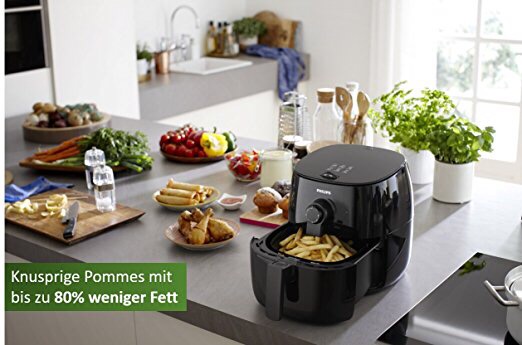 New Philips Airfryer, with patented technology TurboStar RapidAir for more uniform cooking over the previous model. TurboStar RapidAir Thanks to technology, which consists of a vortex of hot air inside the cooking, you can get excellent fried with just one spoonful of oil. Enjoy your favorite dishes, crispy outside and soft inside with no thoughts about fat! Not only healthy fried, use it every day for roasting, grilling, baking, reheating and defrosting. Airfryer is a multi-purpose appliance which you can not do without. Fryer air and multi-cooker to use every day to healthier eating! So much flavor, low in fat!