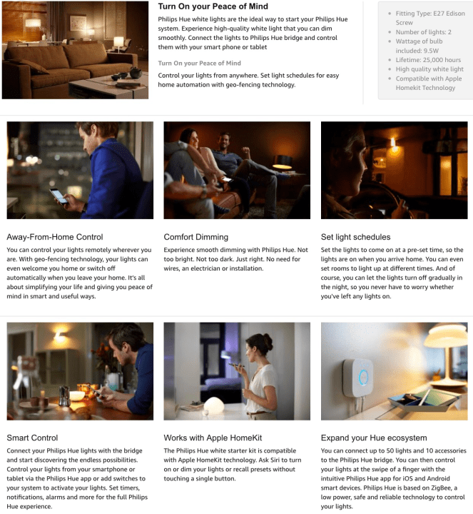Philips Hue White Personal Wireless Lighting LED Starter Kit, 2 x 9.5 W E27 Hue White Bulbs, 1 x Hue Bridge 2.0, Apple Home Kit Enabled, Works with Alexa