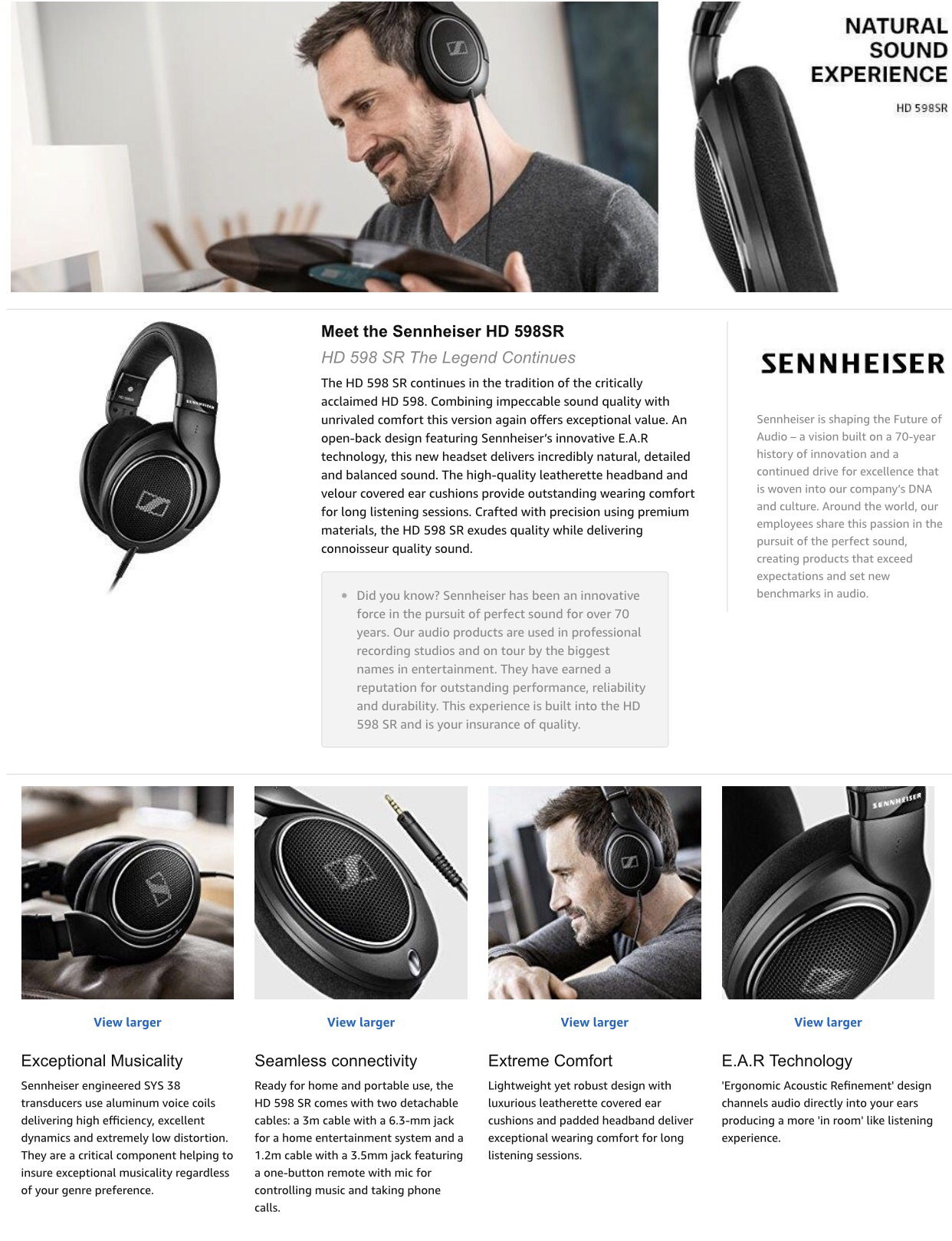 BOTTOM LINE – The superb-sounding Sennheiser HD 598 offers some of the best sense of space we've heard from $250 headphones.