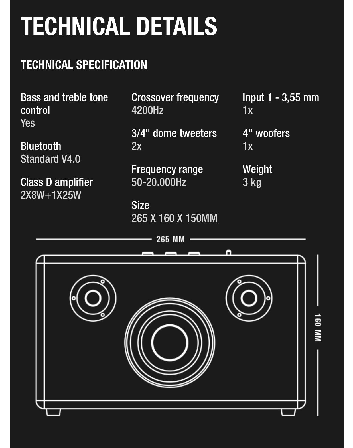 The analogue treble, bass and volume knobs give you custom control of your sound. With unique sound design and quality components, it’s made to deliver accurate response throughout the frequency range.