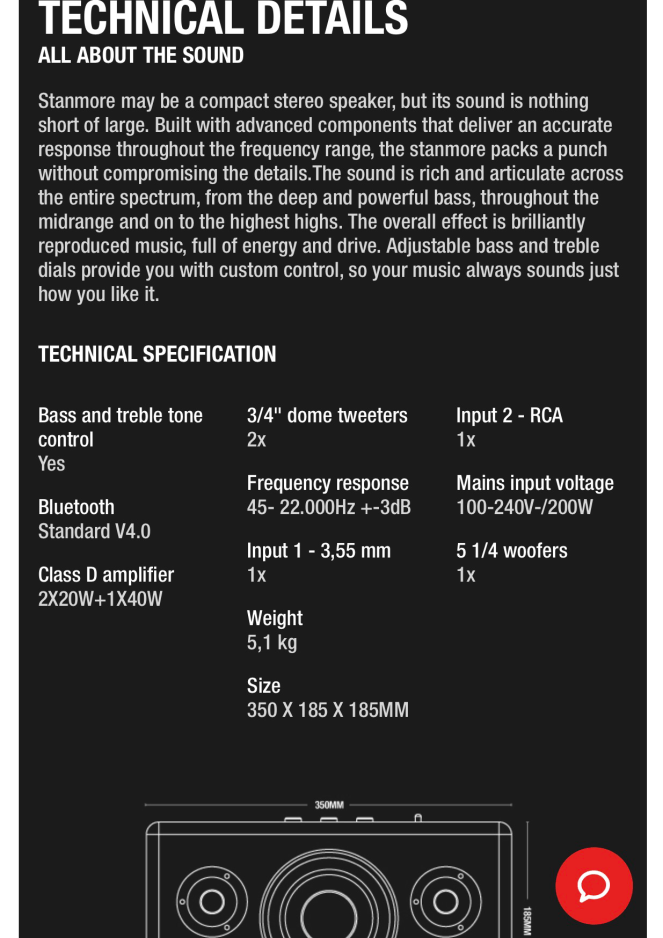 The Stanmore is a compact active stereo speaker that yields clean and precise sound even at high levels.