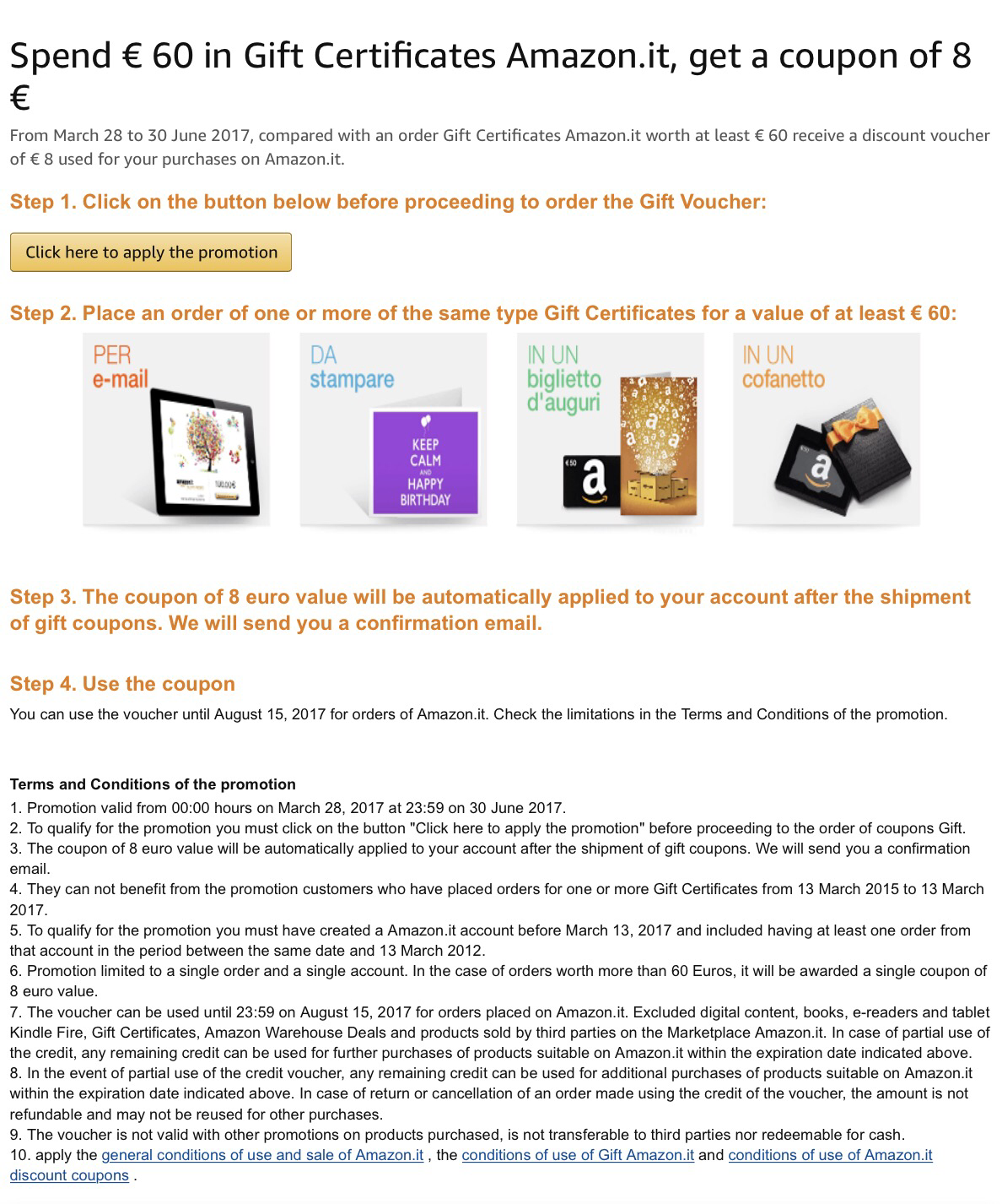 Spend € 60 in Gift Certificates Amazon.it, get a coupon of 8 €