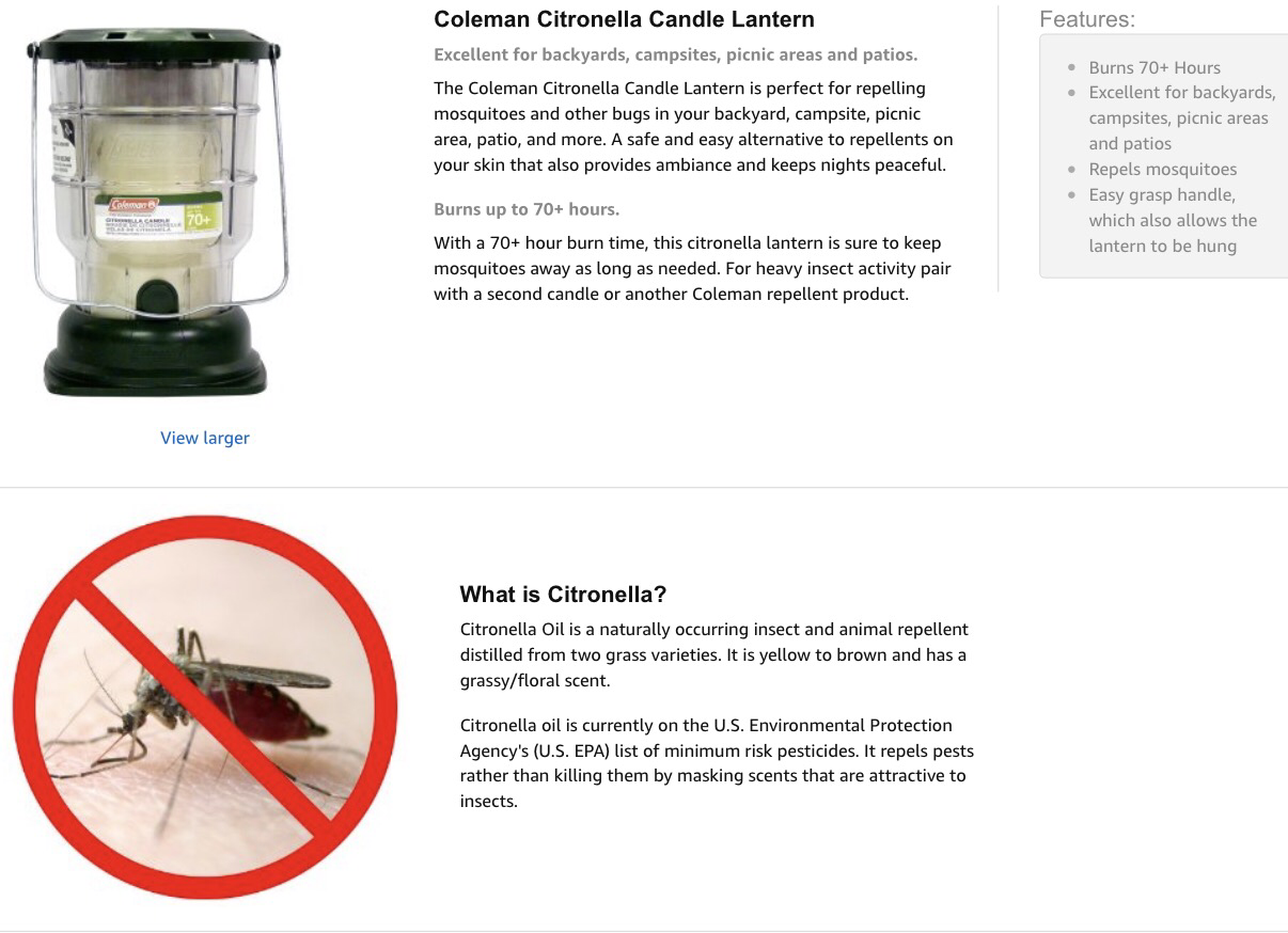 טוב, נשברתי, הם רעים ואני נכנע. מזמין עכשיו חמישיית נרות צינטרונלה של קולמן עם מתקן וכו – היתרון – הנר מספק 70 שעות דליקה.