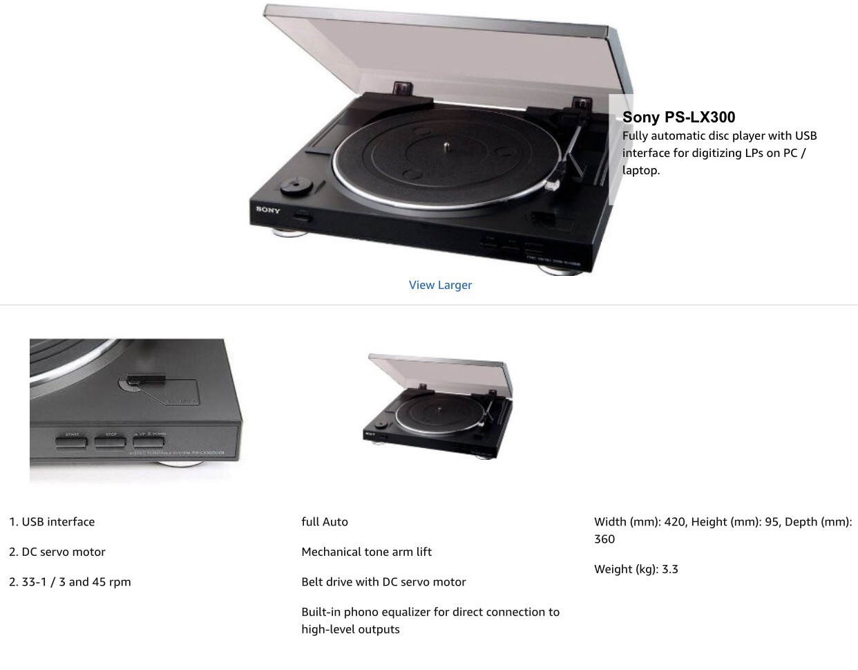 Sony PS-LX Platinum 300 USB fully automatic with USB interface and DC servo motor