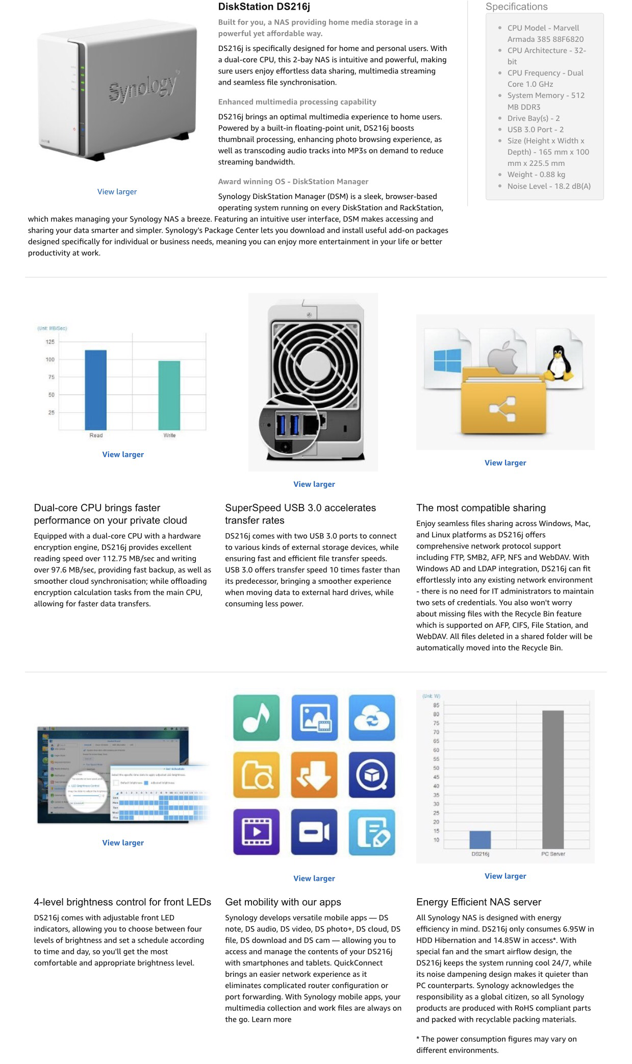 • 4K Ultra HD video transcoding on the fly; With built-in FTP or email clients, DS216play lets you organize and share files through an advanced web application effortlessly