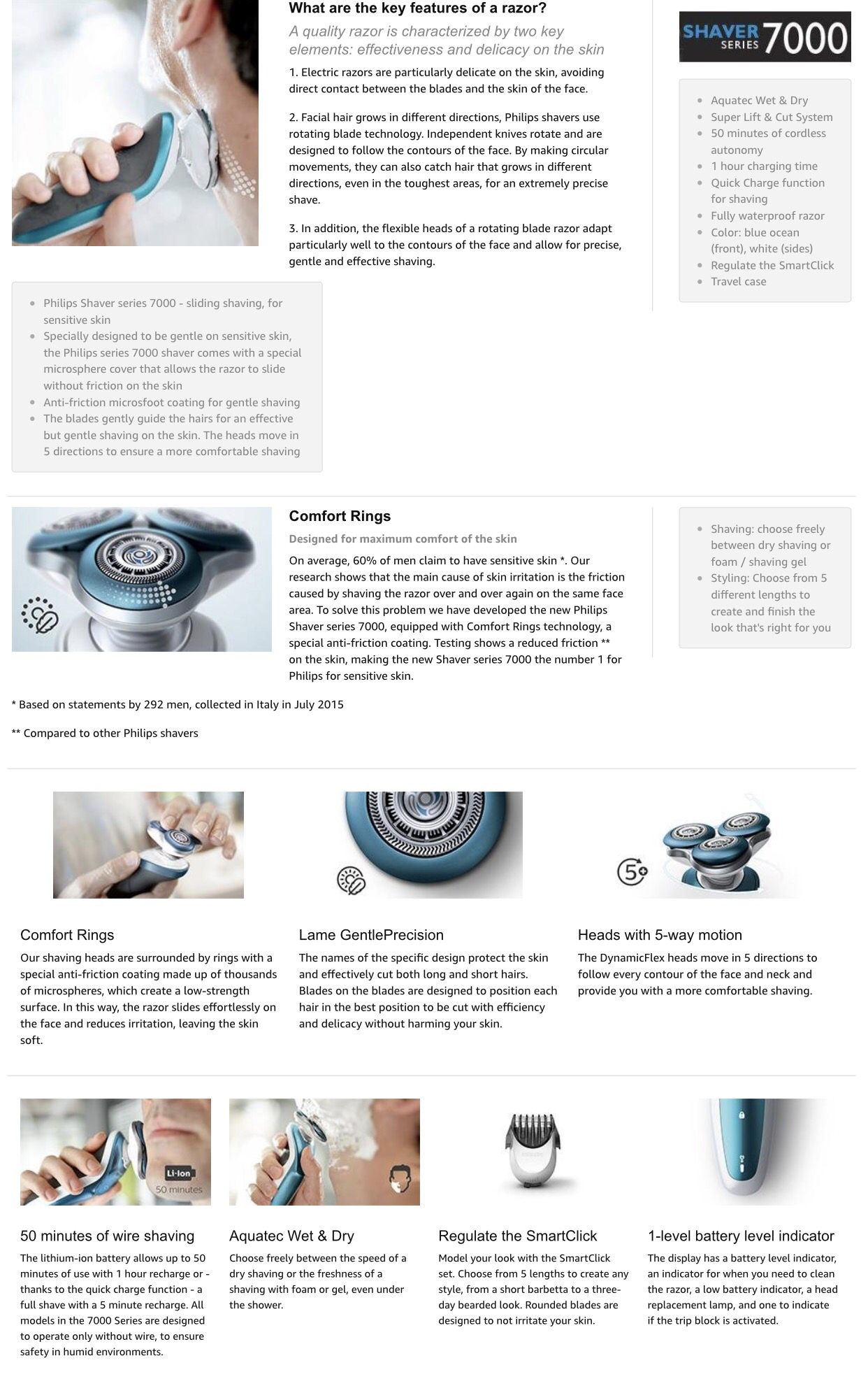 Philips S7370 / 41 Series 7000 – Electric Aquatec Wet & Dry Electric Shaver with Gentleprecision Blades, Dynamicflex Head 5 Directional and Tapping Taps with Comfort Technology + Regulabarba 5 Lengths