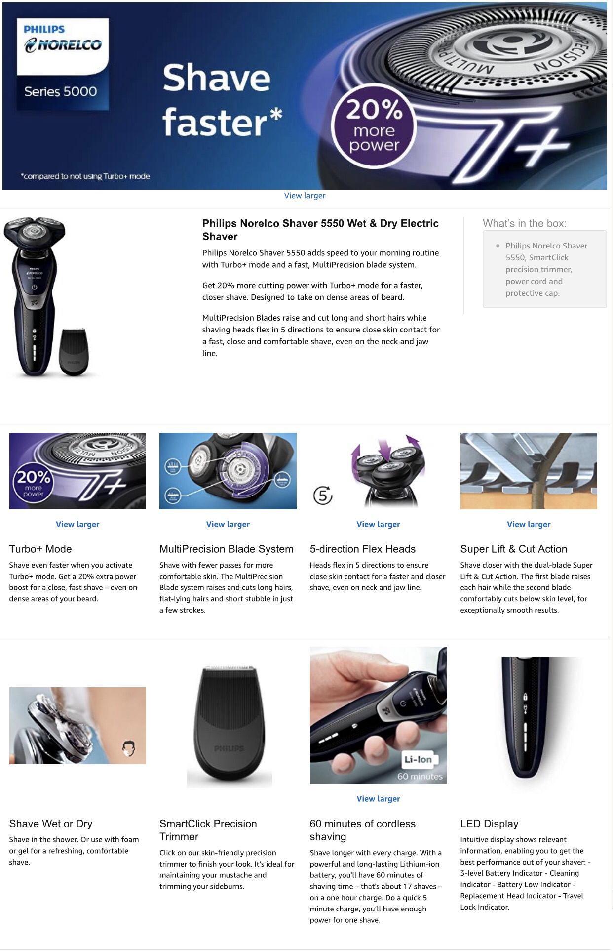 Philips Norelco Electric Shaver 5550, Wet & Dry, S5590/81, with Turbo+ mode and Precision Trimmer