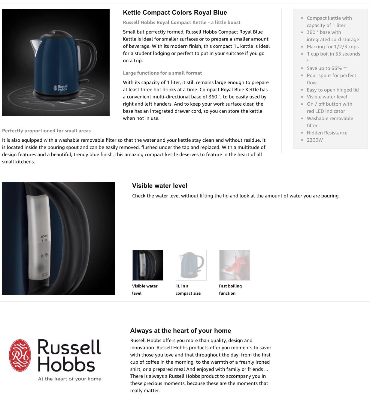Russell Hobbs Chester Compact Kettle כללי Russell Hobbs Chester Compact Kettle 14/08/201717/08/2017 Benny Buchnik - בני בוחניק קומקום להרתחת מים מבית ראסל הובס . קטן, חזק, איכותי… אין מה להרחיב הרבה. זמין במגוון צבעים Russell Hobbs Chester Compact Kettle Compact kettle – 1 liter capacity Elegant all-steel finish Fast boiling zones with 1, 2, or 3-cup marking Boiling a cup in 55 seconds * Save up to 66% ** Pour spout designed for perfect flow Easy to open hinged lid לקנייה – אמזון צרפת – http://amzn.to/2uGX53q | במחיר – 39 יורו עד הבית ** למי שרוצה את הדגם הגדול יותר – בנפח 1.7 ליטר – http://amzn.to/2uWRp4M שתף לחיצה לשיתוף בפייסבוק (נפתח בחלון חדש) פייסבוק לחיצה לשיתוף ב-WhatsApp (נפתח בחלון חדש) WhatsApp יש ללחוץ כדי לשלוח קישור לחברים באימייל (נפתח בחלון חדש) דואר אלקטרוני לחיצה לשיתוף ב-X (נפתח בחלון חדש) X אהבתי טוען... קשור פורסם על ידי Benny Buchnik - בני בוחניק הצגת כל הפוסטים מאת Benny Buchnik - בני בוחניק שתף לחיצה לשיתוף בפייסבוק (נפתח בחלון חדש) פייסבוק לחיצה לשיתוף ב-WhatsApp (נפתח בחלון חדש) WhatsApp יש ללחוץ כדי לשלוח קישור לחברים באימייל (נפתח בחלון חדש) דואר אלקטרוני לחיצה לשיתוף ב-X (נפתח בחלון חדש) X אהבתי טוען...