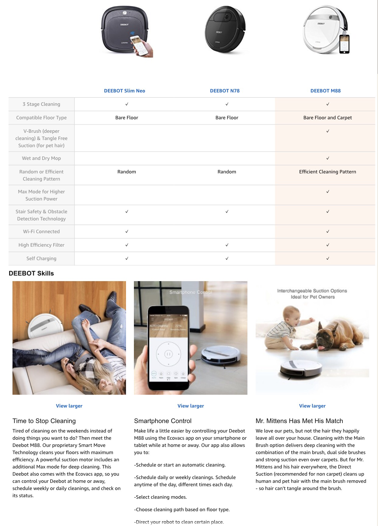 - Wi-Fi compatibility allows you to conveniently schedule, control and monitor your DEEBOT through the Ecovacs smartphone app.