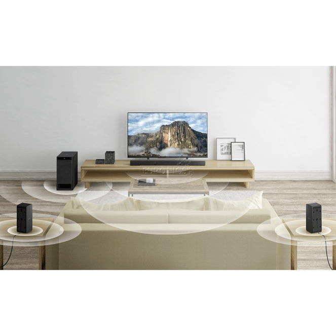 - Sute cinema sound with the real 5.1-channel surround sound: two rear speakers and the external subwoofer together with a 3-channel soundbar provide a rich, space-filling sound