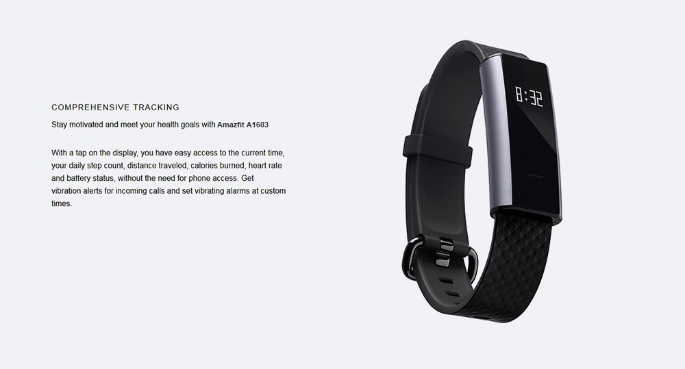 Original Xiaomi AMAZFIT A1603 smartband is a device that makes you live in healthier and more intelligent lifestyle. It helps to monitor basic physical indicators like heart rate that you can know your body condition better. It tracks steps and calories burned and shows you how you're stacking up against your daily goals. Besides, you can share your data on Facebook, Wechat, Twitter, which may encourage you and your friends to do exercise and rise interest in sports. Sedentary reminder will make your life more convenient.