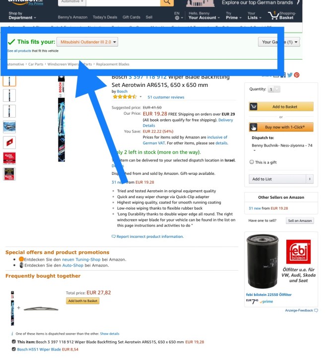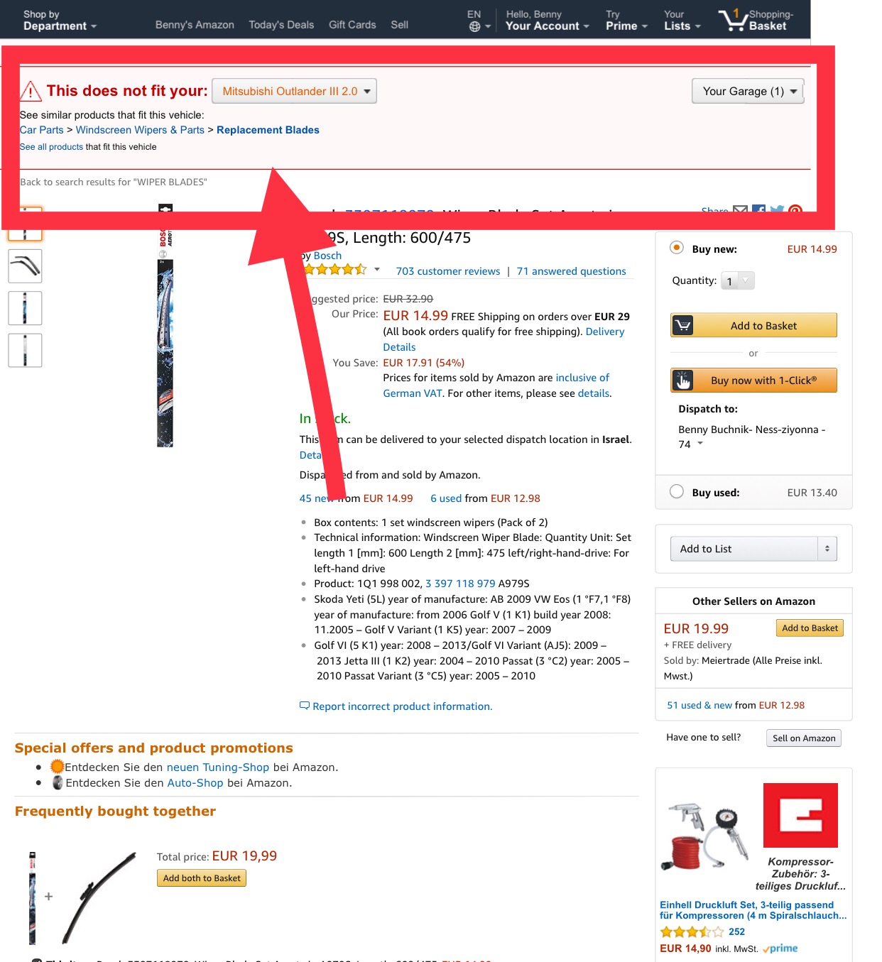 בחרתי את המגב שחשקה נפשי – אכן של BOSCH – ואז …. ווואללללה ! יש זיווג! המוצר מתאים ואמזון מבשרים לי את הבשורה