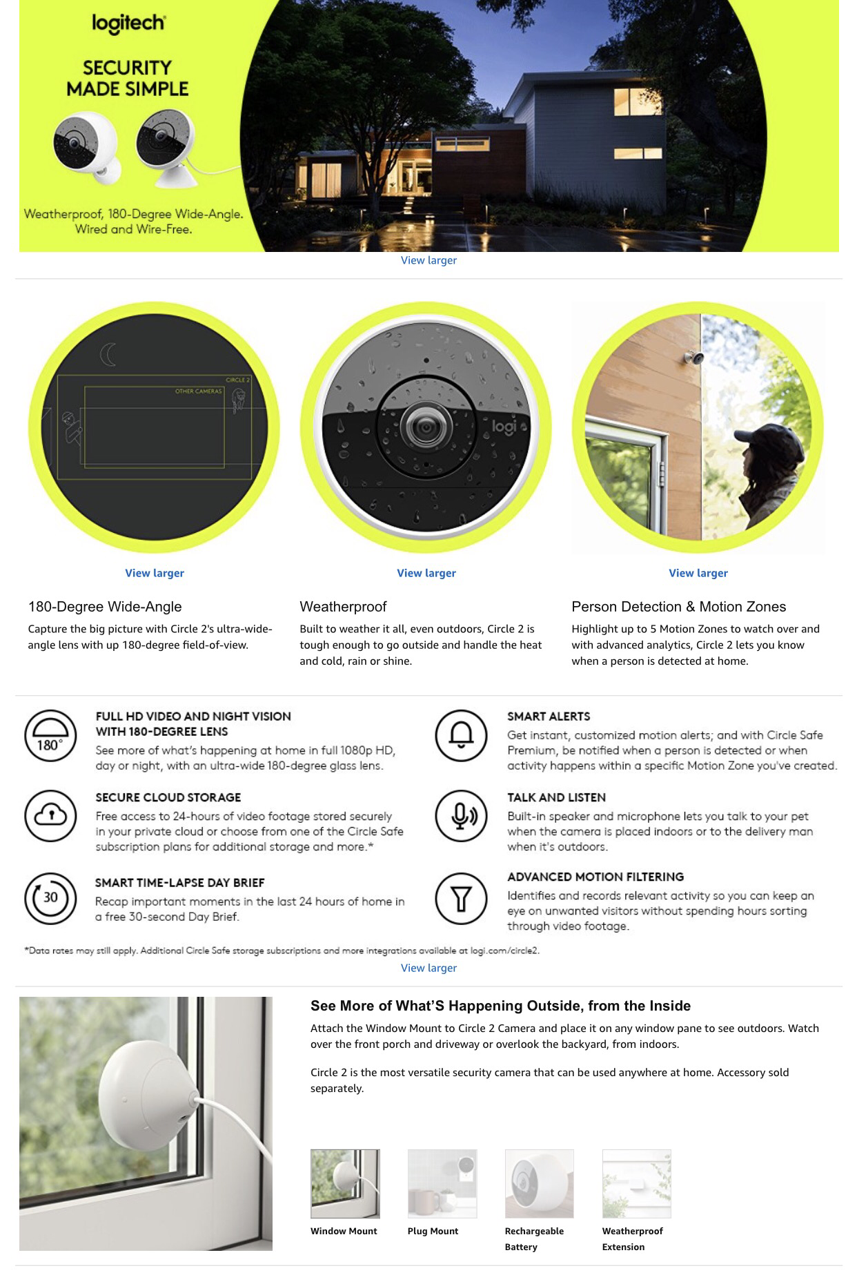 על המצלמה – http://www.logitech.com/en-us/product/circle-2-home-security-camera