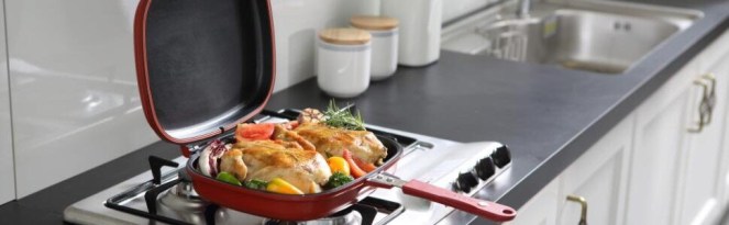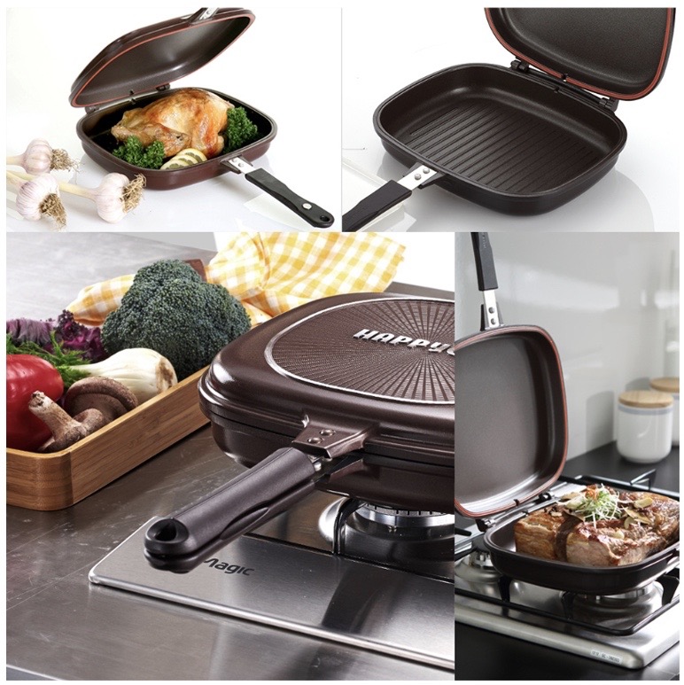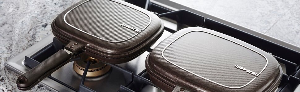 מחבתות וסירים מבית Happycall – היצרן הדרום קוריאני המוביל בעולם למחבת כפול עם ציפוי שמונע הידבקות – כלומר, מחבת בעל חלק עליון שיושב כמו מכסה וכל היחידה נסגרת טוב עם שוליים מסיליקון שאוטם את כל הסיר ובכך מאפשר בישול מהיר וטוב יותר וכמו כן – אפשרות להפוך את המחבת לצד השני תוך כדי בישול ולהמשיך בבישול וההכנה משני הצדדים. והכל בצורה נקיה.