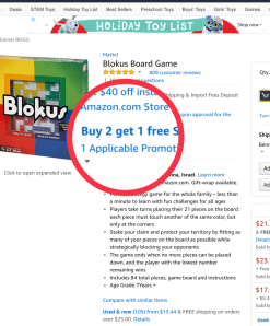 ** עדכון 30/10/17 – אוסף משחקי לוח וחברה במבצע כפול – קנה 2 וקבל בנוסף אחד במתנה! – http://amzn.to/2ihrPmr – שימו לב שעל המוצר להיות שאמזון הוא המוכר ובנוסף מסומן בעמוד מוצר התווית שמסמנת שהוא משתתף במבצע – ראו בתמונה לדוגמא –
