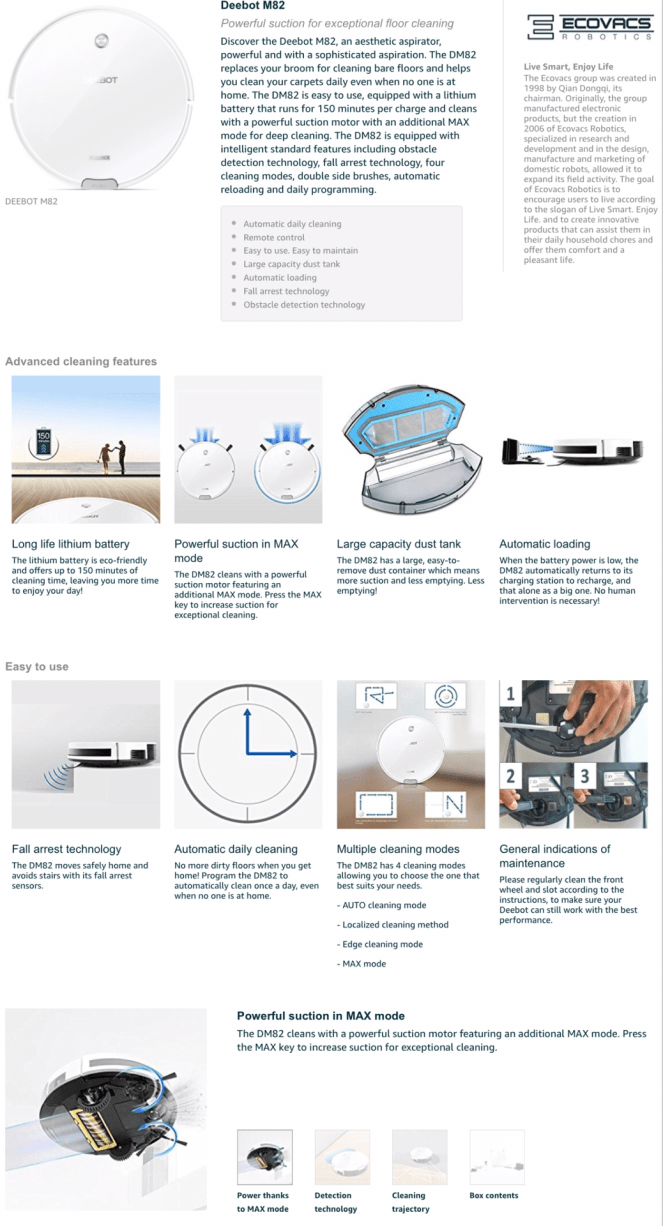 ECOVACS ROBOTICS DEEBOT M82 – High-performance and quiet vacuum cleaner robot with long battery life of 150 min