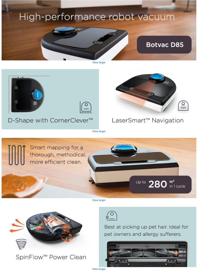 שואב אבק רובוטי מבית NEATO דגם BOTVAC 85D. כולל מברשת משולבת שיער וסיליקון שנועדה באופן ייחודי כדי לאסוף את שיער חיית המחמד שלכם. ביצועים גבוהים – הרובוט הטוב ביותר עבור איסוף אבק ואלרגנים. פילטר גדול במיוחד בעל ביצועים גבוהים, מסנן ולוכד יותר אבק ואלרגנים. טכנולוגיה מונחת לייזר סורקת וממפה את החדר, מתכננת ומנקה בשיטתיות ועוברת באופן אוטומטמחדר לחדר