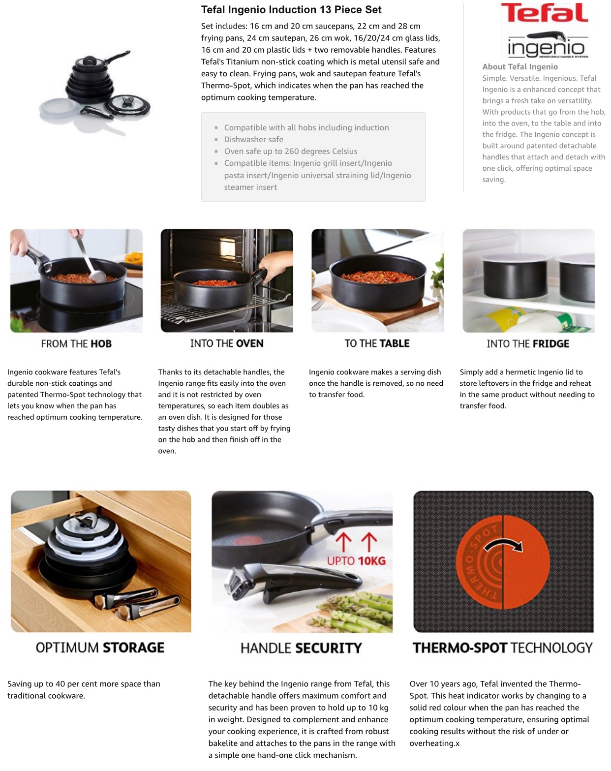 - Tefal's thermo-spot technology on the frying pans, wok and sautepan indicates when your pans reach optimum cooking temperature