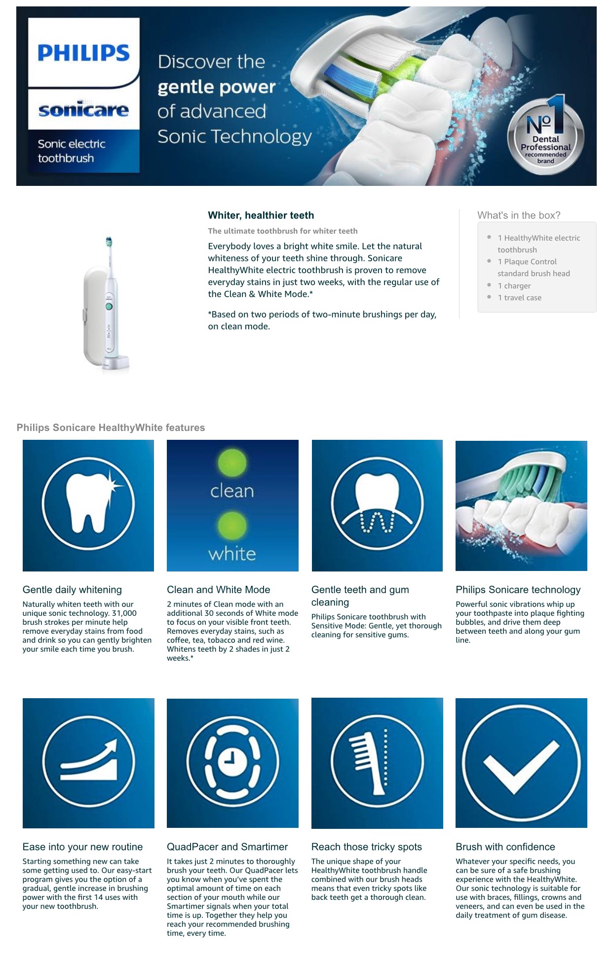 - Quad pacer and two-minute timer helps ensure dental professional recommended brushing time