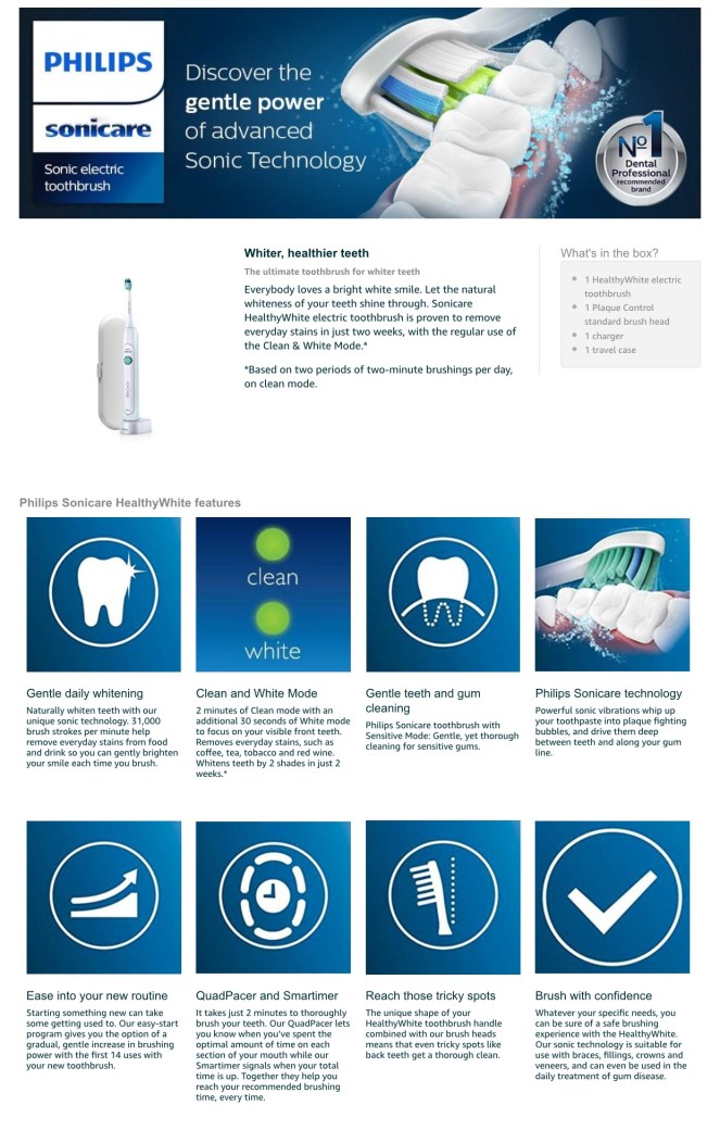 - Effective and unique sonic technology with dynamic fluid action to clean between teeth and along gum line