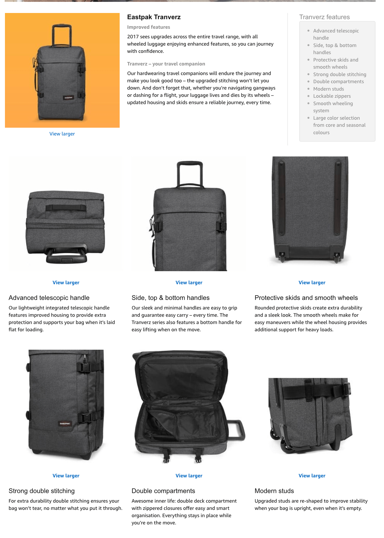 חברת התיקים והמזוודות האמריקאית עם Eastpak עם תיקי נסיעות ומזוודות על גלגלים. כולל דגמים המתאימים לעלייה למטוס.
