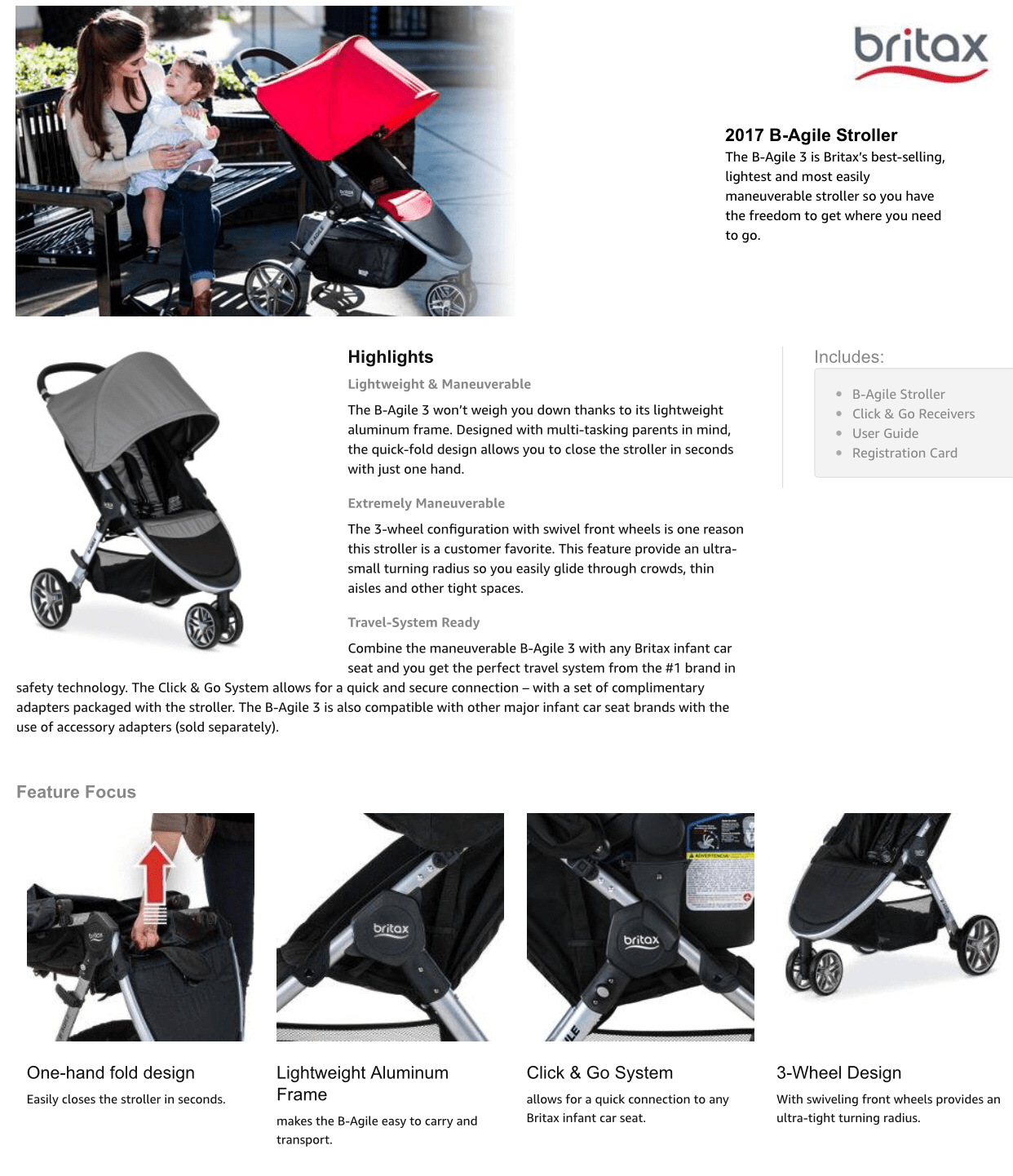 עגלת הילדים של חברת בריטקס – דגם B-Agile החדש – 2017. במגוון צבעים עם שילוח עד הבית.