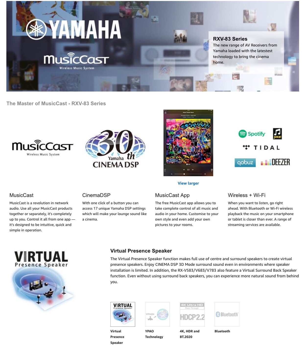 • Yamaha Music Cast compatible – anything plugged into this AVR can be streamed around the house