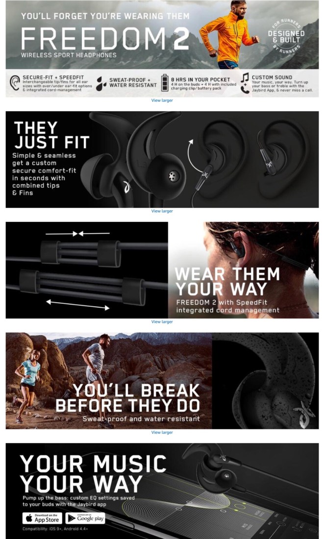 • Custom sound – pump up the bass – freedom 2 works with the Jaybird app to give you your music, your way with drop-free Bluetooth signal strength