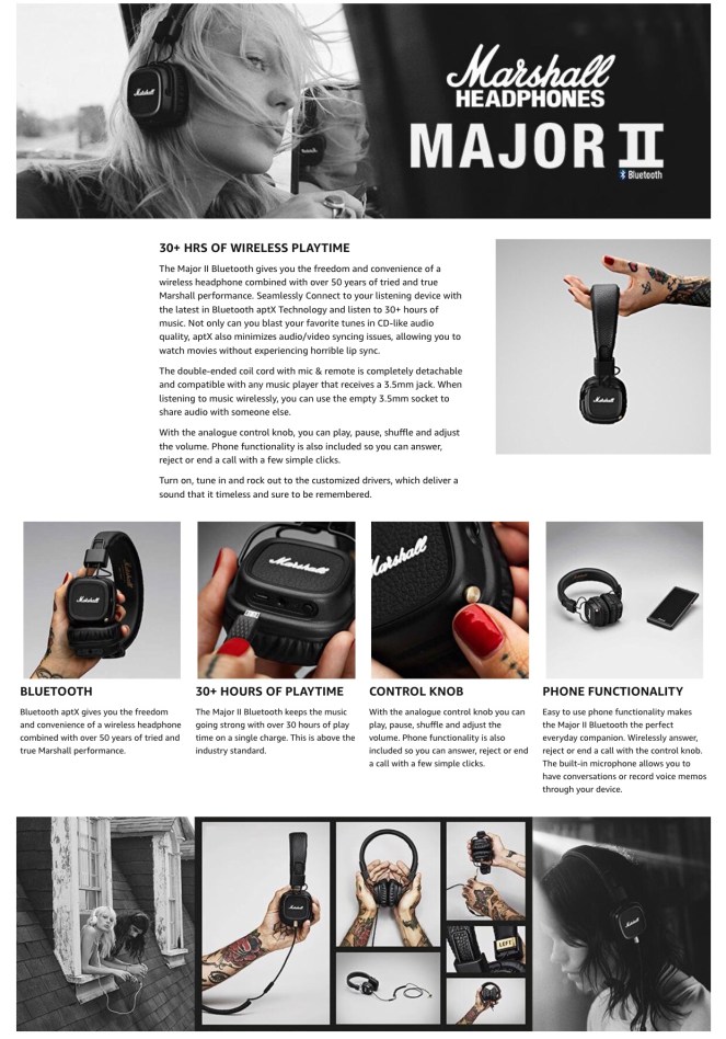 • The Major II is the perfect travel companion. Its collapsible design makes it easy to store when they’re not in use, A detachable 3.5mm cord and USB charging cable comes with the Major II Bluetooth. In case you find yourself low on power just plug in the usb cable to recharge