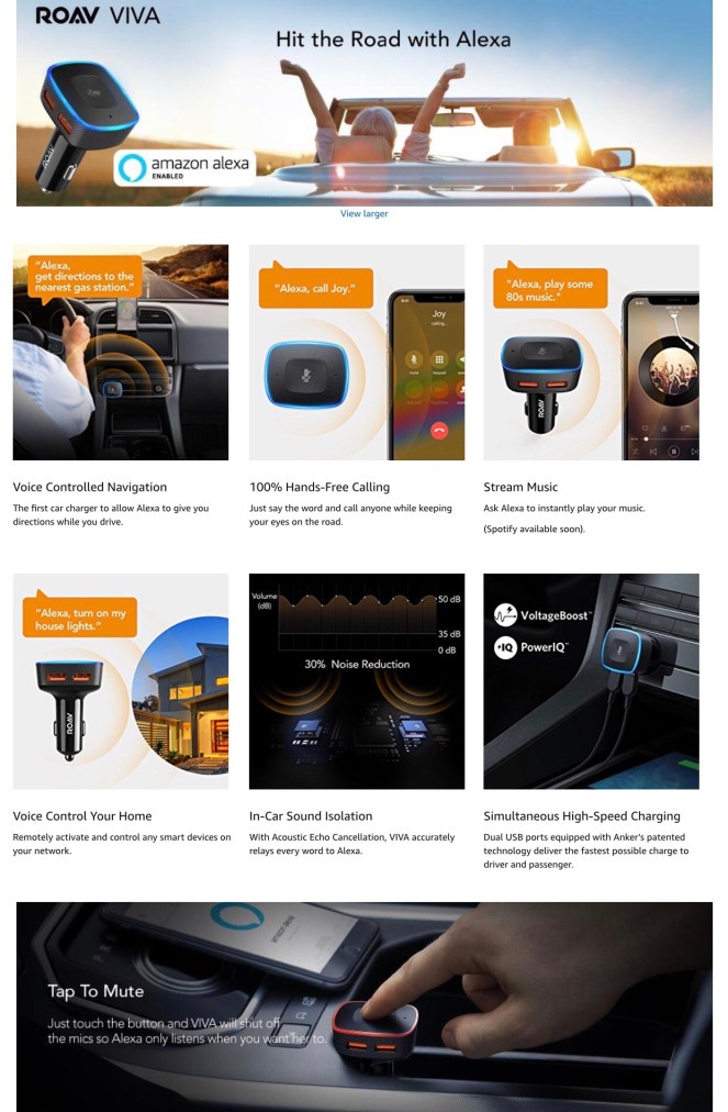 Roav VIVA, Alexa Enabled 2-Port USB Car Charger for In-Vehicle Navigation, Hands-Free Calling and Music Streaming (Spotify Available Soon). For Cars with Bluetooth/CarPlay/Android Auto/Aux In