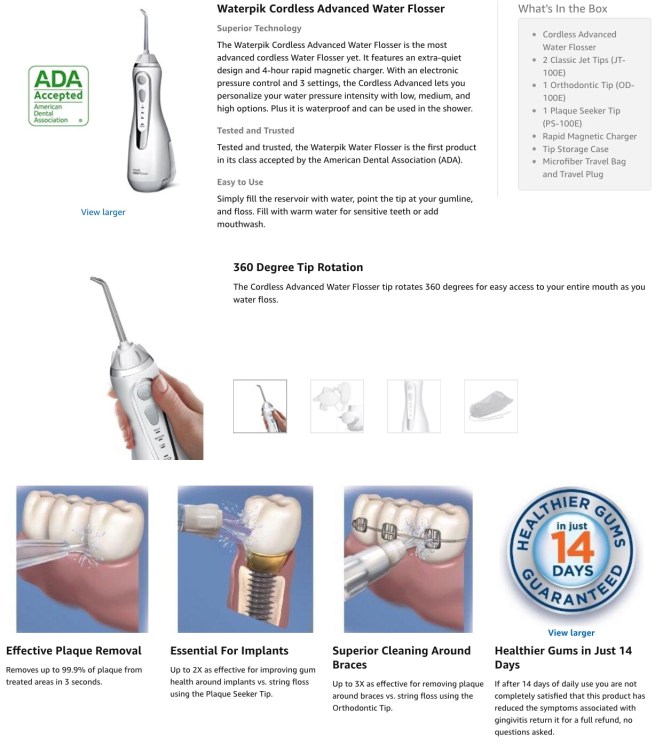 • First in category – Waterpik Water Flosser awarded the American Dental Association (ADA) Seal of Acceptance