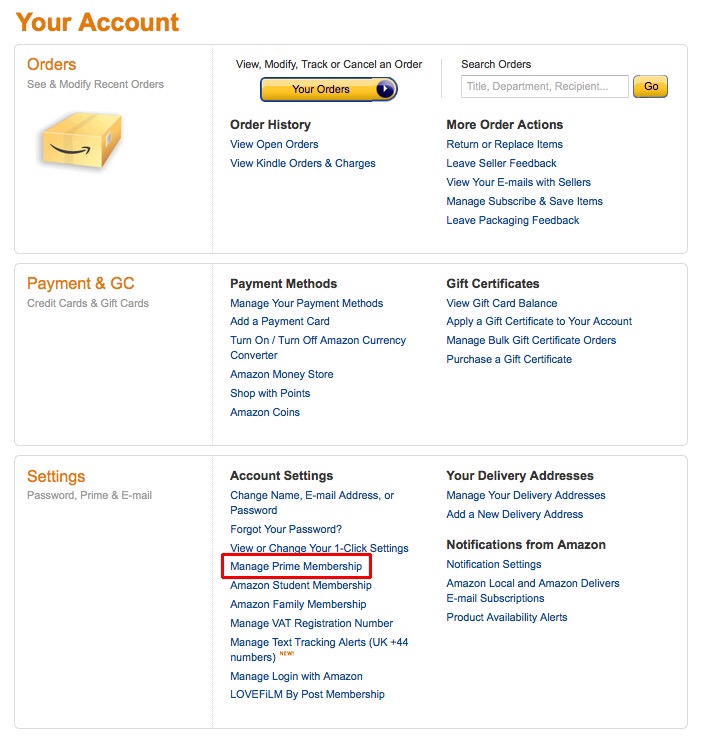 נכנסים לכרטיס האישי שלכם וביחרו Manage Prime  Membership