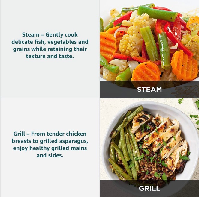 - • Tender crisp technology – pressure cook to lock in juices, then crisp to perfection