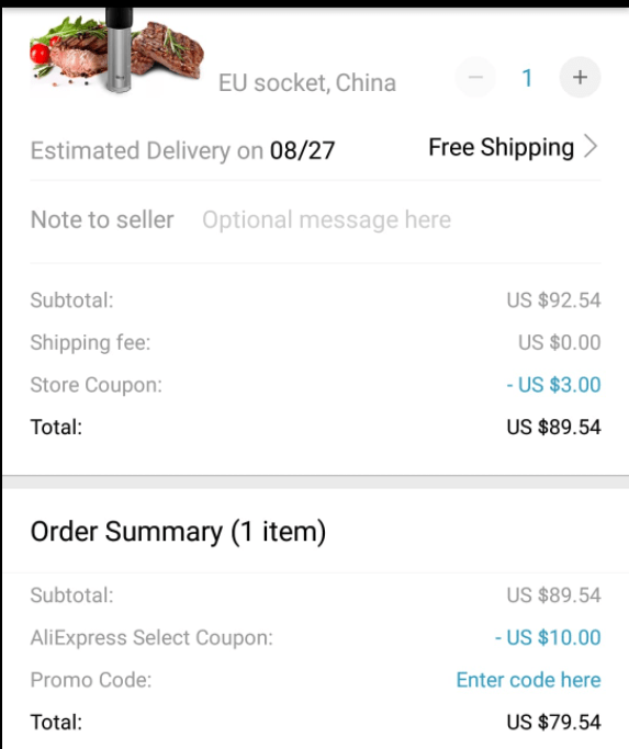 קחו את המוצר הזה למשל, המוכר החליט שניתן להשתמש 5 קופוני סלקט, איך רואים זאת? בעמוד הקניה הסופי נראה אוטומטית את כל הקופוני סלקט שאספנו, כאן 2*5= 10$ הנחה בקופוני סלקט, חשוב להדגיש אין לכם שליטה על קופוני סלקט, המוכר מחליט אוטומטית בכמה ניתן להשתמש, לכן אוספים כמה שיותר.