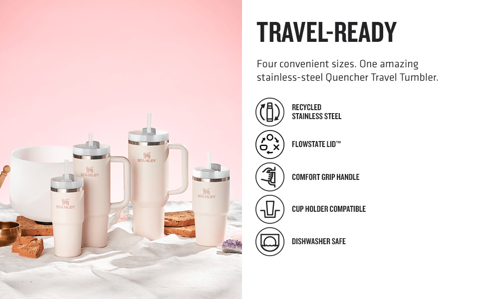 EARTH-FRIENDLY DURABILITY: Constructed of 90% recycled BPA free stainless steel for sustainable sipping, the Stanley Quencher H2.0 has the durability to stand up to a lifetime of use. Eliminate the use of single-use plastic bottles and straws with a travel tumbler built with sustainability in mind.