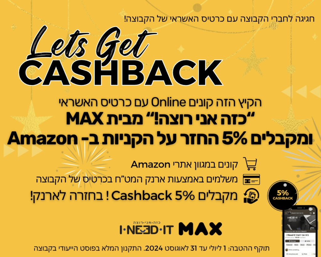 והקיץ חגיגה! כפולה! משלמים עם ארנק המט"ח ב- Amazon ומקבלים 5% Cashback על הקניות! לפרטים – https://www.facebook.com/groups/INeedItIL/permalink/7692308600884238